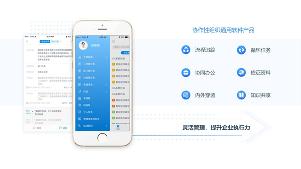 智慧移动办公是一款企业对工作任务进行全过程管理的智能化系统。实现了从线下办公向移动办公方式的转变。通过手机实时进行任务创建、派发、反馈和审核,解决用户任务易遗漏、审批难、事务堆积和任务分工不清晰等痛点问题。
