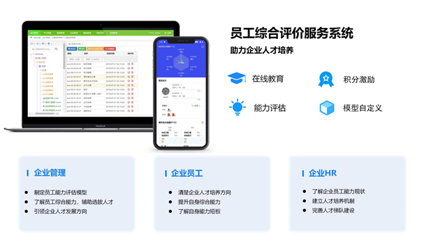 员工综合评价服务系统能够帮助管理者直观了解员工综合素质能力,可依据岗位需求定制不同的人才模型,自动分析计算,辅助人才选拔,解决人才选拔缺标准、无依据的问题。同时,系统可根据企业的人才需求为员工提供提升渠道,指引员工发展方向,提供在线视频培训、任务引导等丰富的学习途径,是企业培养和选拔人才的好帮手。