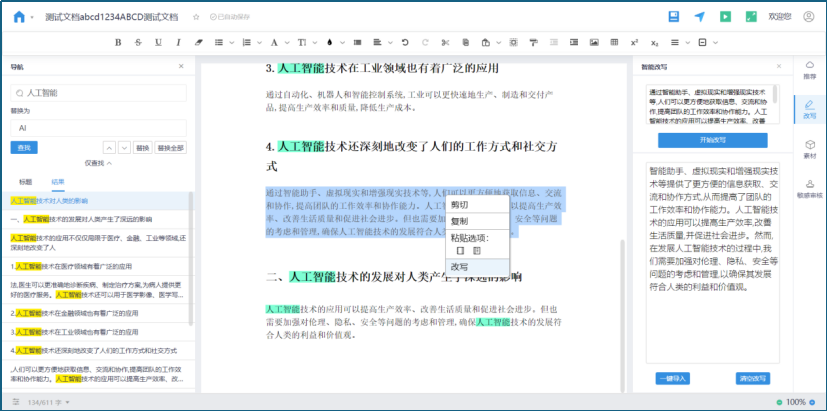 此外,系统还能对生成的文本进行语法检查、语义分析等优化处理,确保文档的准确性和流畅性。这种智能化的写作方式不仅极大地提高了写作效率,还使内容创作更加专业。