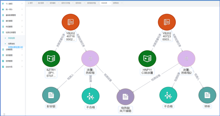 基于知识图谱技术,综合赛事华体会体育官方网站LIMS系统能够对异常的检测数据进行深入分析,查找共性原因。例如,当系统发现多组数据异常时,会自动比对分析,确认是否由同一机台生产、同一个检测人或同一个检测设备导致,从而精准定位问题根源,为后续的改进措施提供有力支持。