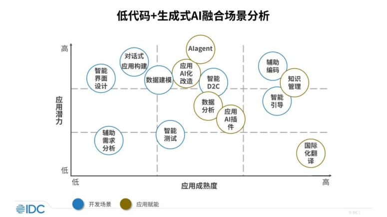 IDC 认为,企业数字化过程中有大量组织治理和业务运营的长尾场景需求,这些场景难以被成品软件覆盖,需要通过低代码和 AI 来解决。