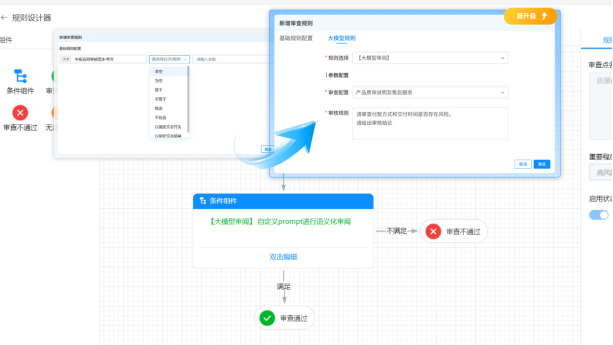 升级后:只需要在系统内输入想实现的审查效果,大模型就能迅速理解并调用对应的规则!相当于把规则配置的难题交给大模型,用户只需要提出自己的需求即可。
