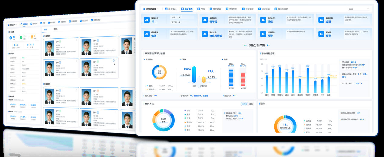 1.1以领导班子各类数据为基础,多维度、多数据模型分析领导班子运行情况,辅助开展分类盘点,进行综合研判,为领导班子的决策分析提供科学依据。