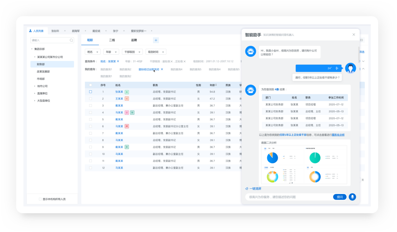 1.2以领导人员各类数据为基础进行多维度数据刻画,借助人工智能技术手段增强数据分析能力,实现精准画像,辅助领导识别优秀干部。
