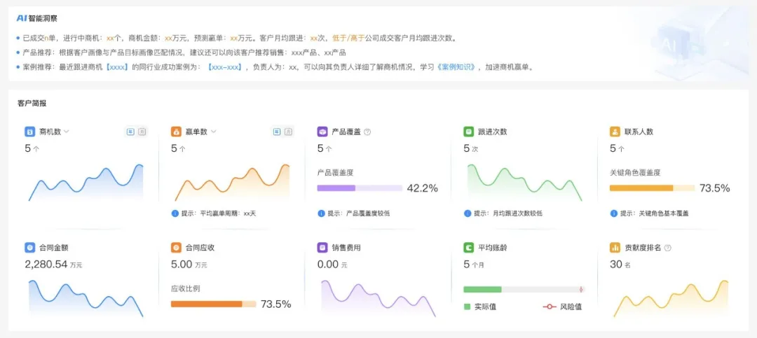 A:AI基于客户行业特征、采购历史、行为数据及外部信息(如年报、官网新闻),进行推荐并标注决策依据。比如,推荐“MES+ERP”的产品组合,决策依据为“该客户与MES系统目标客户匹配度超过90%”“客户近期发布ERP招采需求”等。价值:交叉销售成功率提高50%,客户生命周期价值延长2倍。