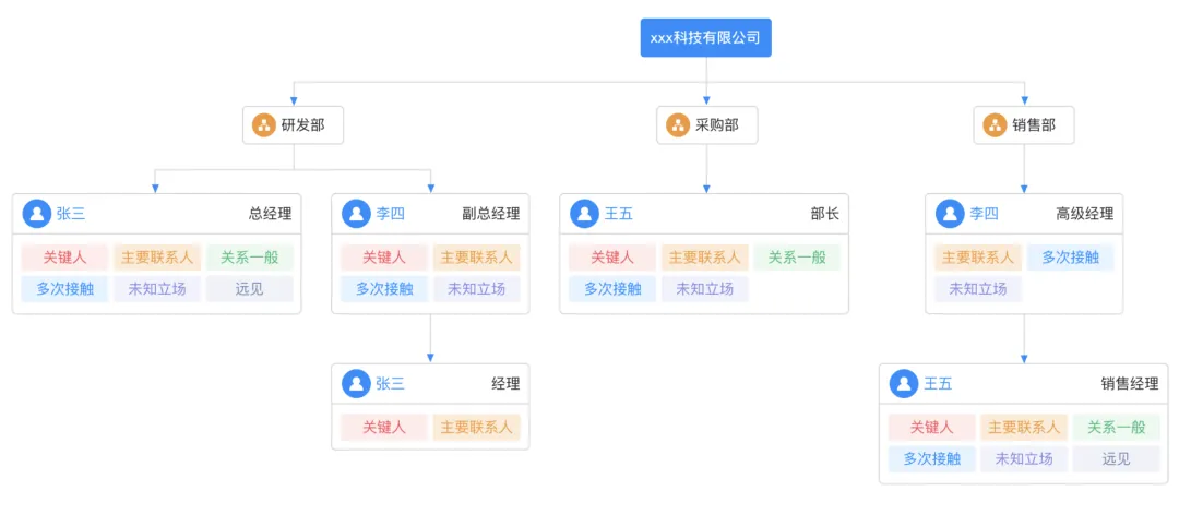 Q:某大客户项目涉及多个部门以及多个联系人,决策链不直观,如何保证商机推进效率?