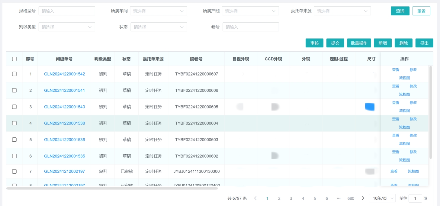实验室需在膜卷完成检测后汇总结果、判定等级,并基于母卷的结果对子卷判级。原流程依赖人工汇总检测数据并手动判级。综合赛事华体会体育官方网站LIMS可自动汇总检测结果,按预设规则自动生成判级单。系统还能同步标记不合格项,确保问题一目了然。检测结果和判级信息会实时传递至MES系统,免除了人工梳理和判级的过程,实现了检测流程的自动化管理,提升了工作效率和数据准确性。