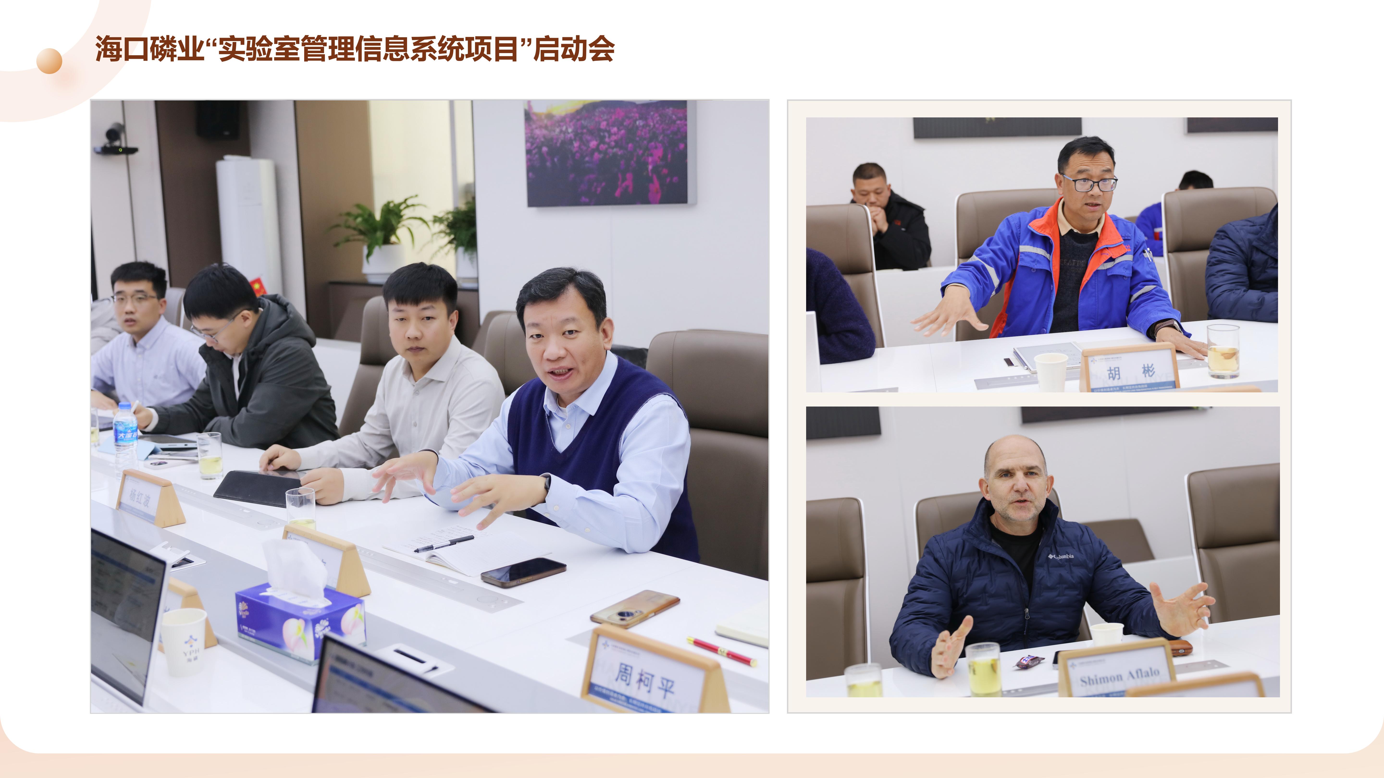 启动会上,海口磷业生产运营副总胡彬、首席技术官Shimon Aflalo,以及综合赛事华体会体育官方网站副总裁黄绪涛、LIMS产品中心主任王一吏、南方大区总经理杨红波等双方领导出席会议并致辞。